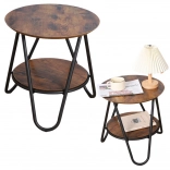 Dosky sú vyrobené z MDF dosky v farbe rustikálneho dreva, čo dodáva miestnosti útulnú atmosféru, zatiaľ čo zakrivené kovové nohy dodávajú stolíku ľahkosť a modernosť. Vďaka prídavnej poličke môžete ukladať menšie predmety, ako sú diaľkové ovládače, knihy alebo dekorácie, bez toho, aby ste zahltili hlavnú pracovnú plochu. Stolík sa ľahko prenáša vďaka nízkej hmotnosti.