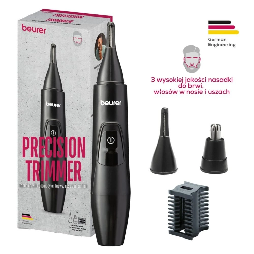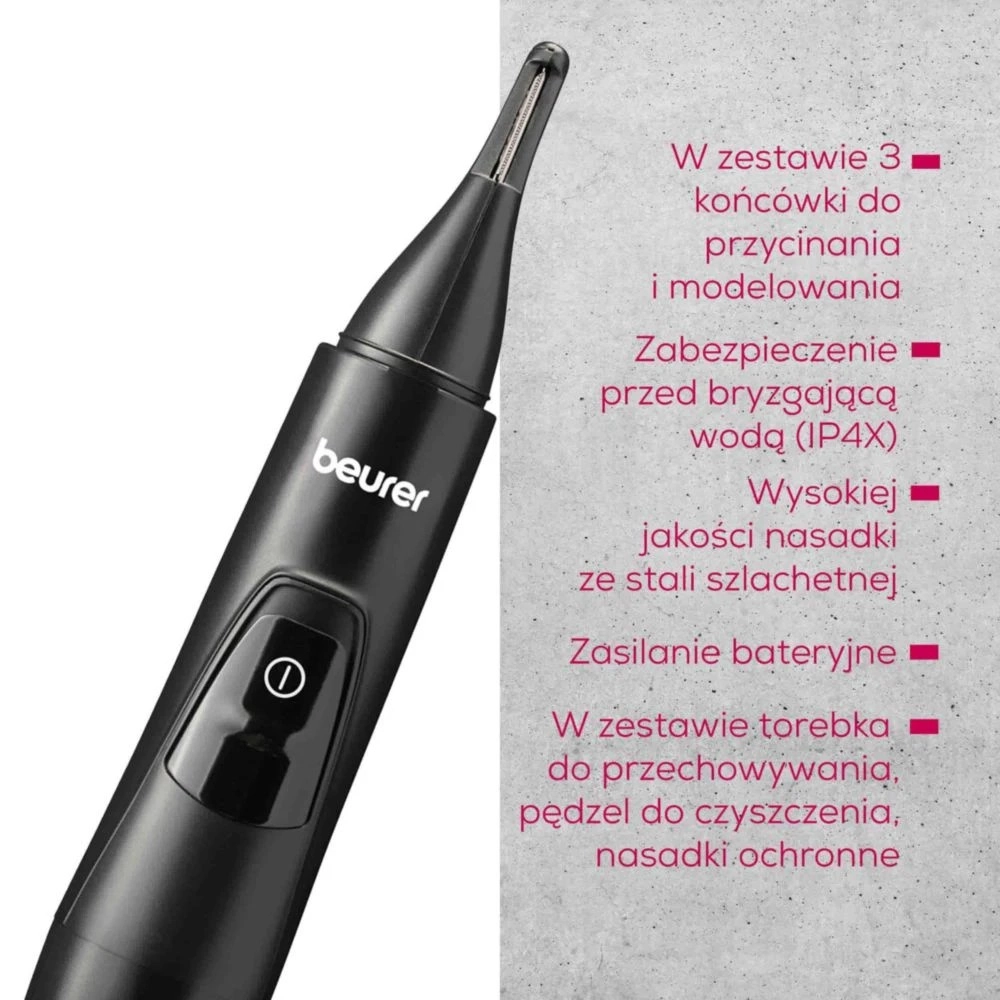 Kompaktný zastrihávač Beurer MN2X je ideálny na každodennú starostlivosť o obočie, nos a uši. Ponúka precíznu úpravu vďaka 3 vymeniteľným nadstavcom, nerezovým britom pre maximálny komfort pokožky a odolnosť voči striekajúcej vode IPX4. Jednoduché čistenie a praktické cestovné puzdro z neho robia skvelého pomocníka doma aj na cestách.