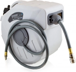 Udržujte dielňu v poriadku a pracujte efektívne s týmto automatickým navijakom na pneumatickú hadicu. 15 m dosah, automatické navíjanie, otočný držiak 180° a rýchlospojka 1/4" zabezpečia pohodlné použitie ku kompresoru aj pneumatickému náradiu.
