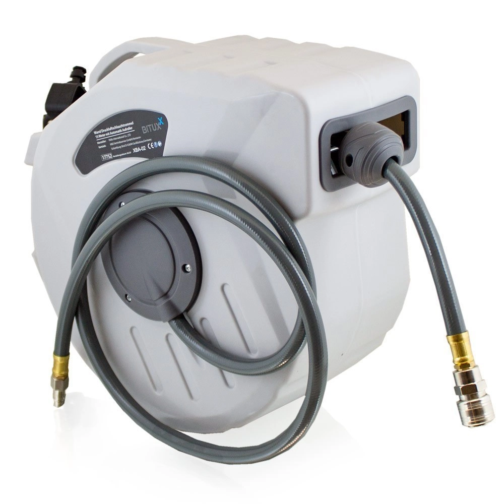 Automatický navijak pneumatickej hadice prináša poriadok, bezpečie a plynulú prácu v dielni aj garáži. Odolné plastové telo chráni mechanizmus, elastická PVC hadica si zachováva pružnosť aj pri nižších teplotách a automatické navíjanie udrží hadicu vždy úhľadne zloženú.