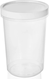 Univerzálna okrúhla dóza z kvalitného plastu s priehľadným telom umožní rýchlu kontrolu obsahu bez otvárania. Biely skrutkovací kryt s integrovaným tesnením zabraňuje rozliatiu a udržiava jedlo dlhšie čerstvé. Vďaka kompaktným rozmerom (výška cca 15,5 cm, priemer cca 11 cm) sa pohodlne zmestí do tašky aj na policu v chladničke.