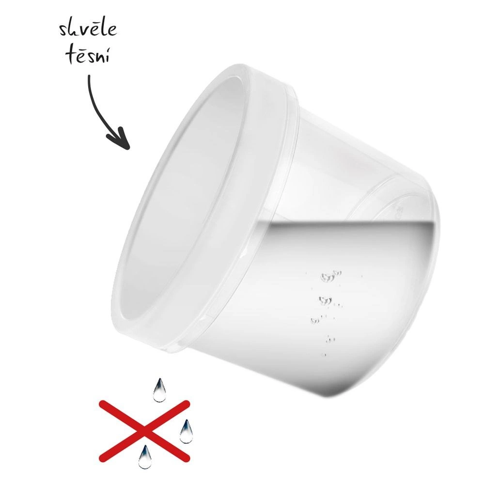 - Priehľadné telo, biele viečko