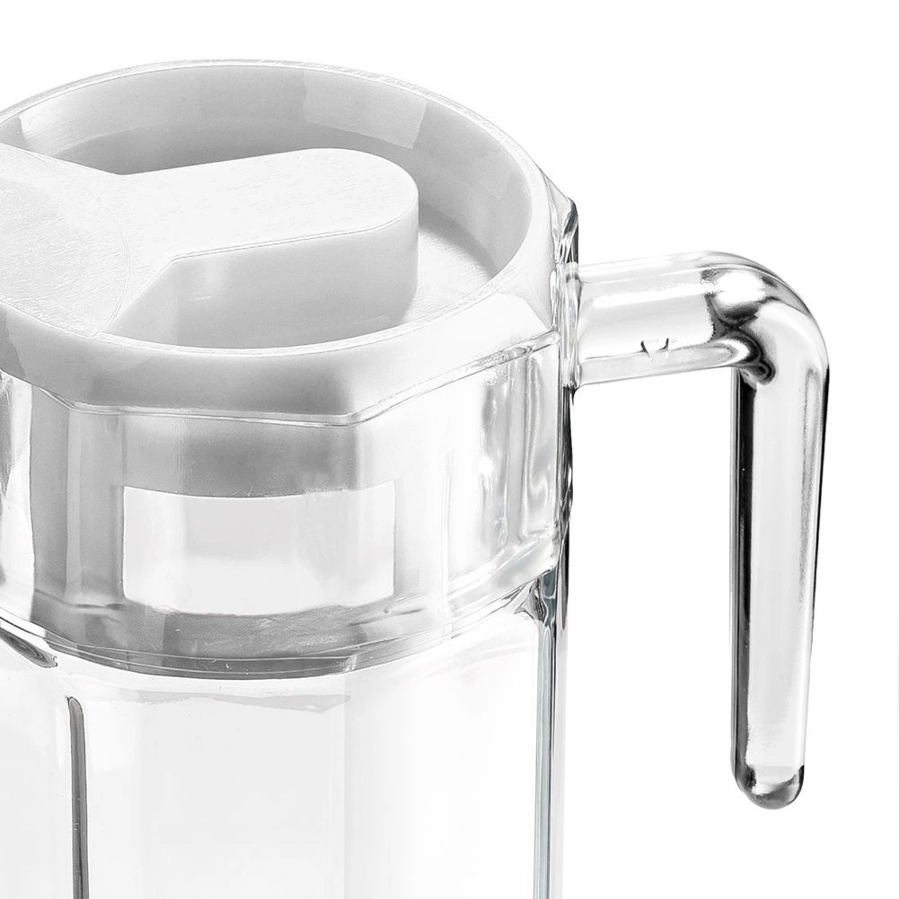Praktické veko z odolného plastu chráni nápoj pred hmyzom a prachom, zatiaľ čo ergonomické uško a profilovaný zobáčik zaručujú pohodlné a presné nalievanie bez kvapiek. Džbán možno umývať v umývačke a skladovať v chladničke. Je určený na nápoje do 60 °C; bez veka je možné krátke ohrievanie v mikrovlnke do teploty nižšej než 60 °C.