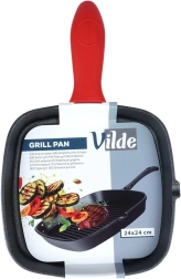 Liatinová grilovacia panvica štvorcová so silikónovým chráničom rukoväti 24,5 × 24 cm