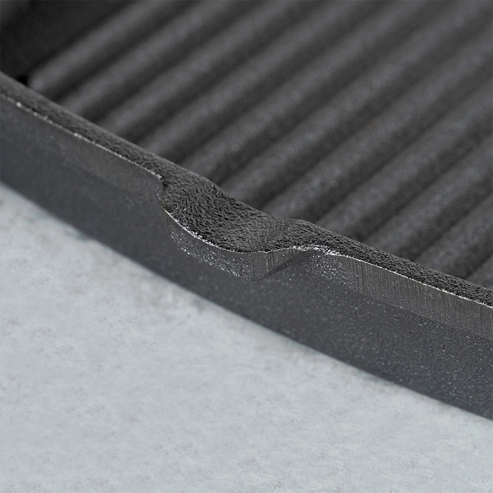 Vyššie rebrá vytvárajú výrazné grilovacie pruhy a odvádzajú tuk. Integrované výlevky uľahčia zliatie štiav a omastku.