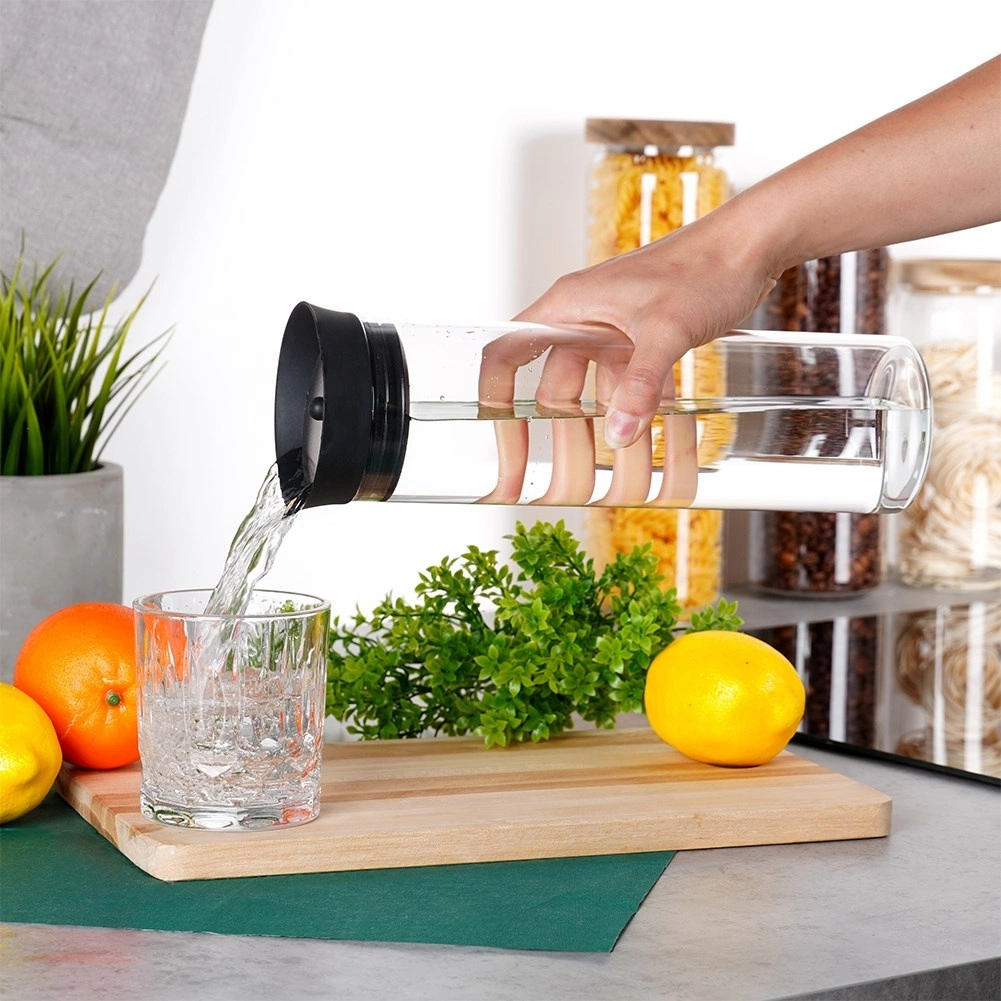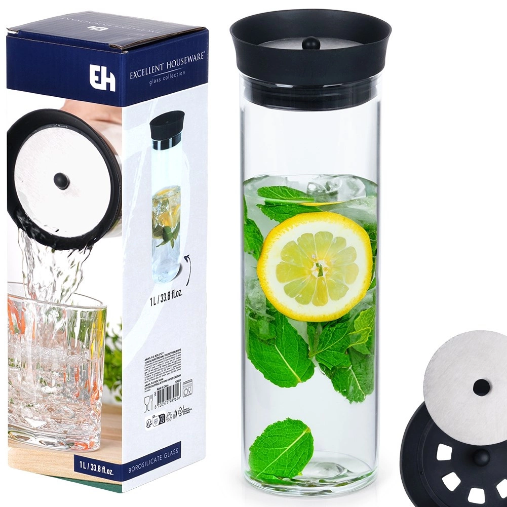 Táto univerzálna karafa je vyrobená z číreho borosilikátového skla, ktoré vyniká odolnosťou a elegantným vzhľadom. Viečko z kombinácie silikónu a nehrdzavejúcej ocele zabezpečuje čisté nalievanie bez odkvapkávania a zároveň chráni nápoj pred nečistotami a hmyzom.