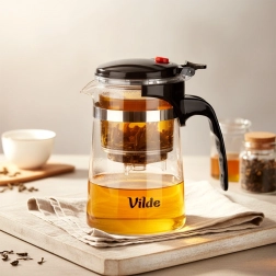 Objavte kompaktné riešenie pre dokonalý čaj: sklenená kanvica s dvojfázovým sparovaním, ktoré maximalizuje chuť a šetrí čajové lístky. Lístky sa lúhujú v hornej komore, kde presne kontrolujete intenzitu esencie. Jediným stlačením tlačidla sa nálev uvoľní do spodného džbánku – bez prelievania a bez neporiadku.