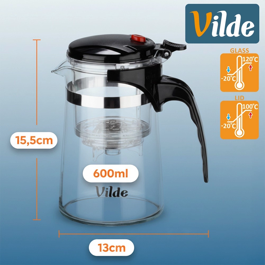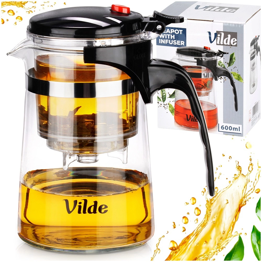 Praktická sklenená kanvica so sparovačom na prípravu sypaného čaju, bylín a nálevov. Vďaka spúšťaciemu systému ľahko oddelíte nálev od lístkov bez usadenín, priehľadné borosilikátové sklo umožní sledovať proces lúhovania a objem 600 ml je ideálny na každodenné použitie.