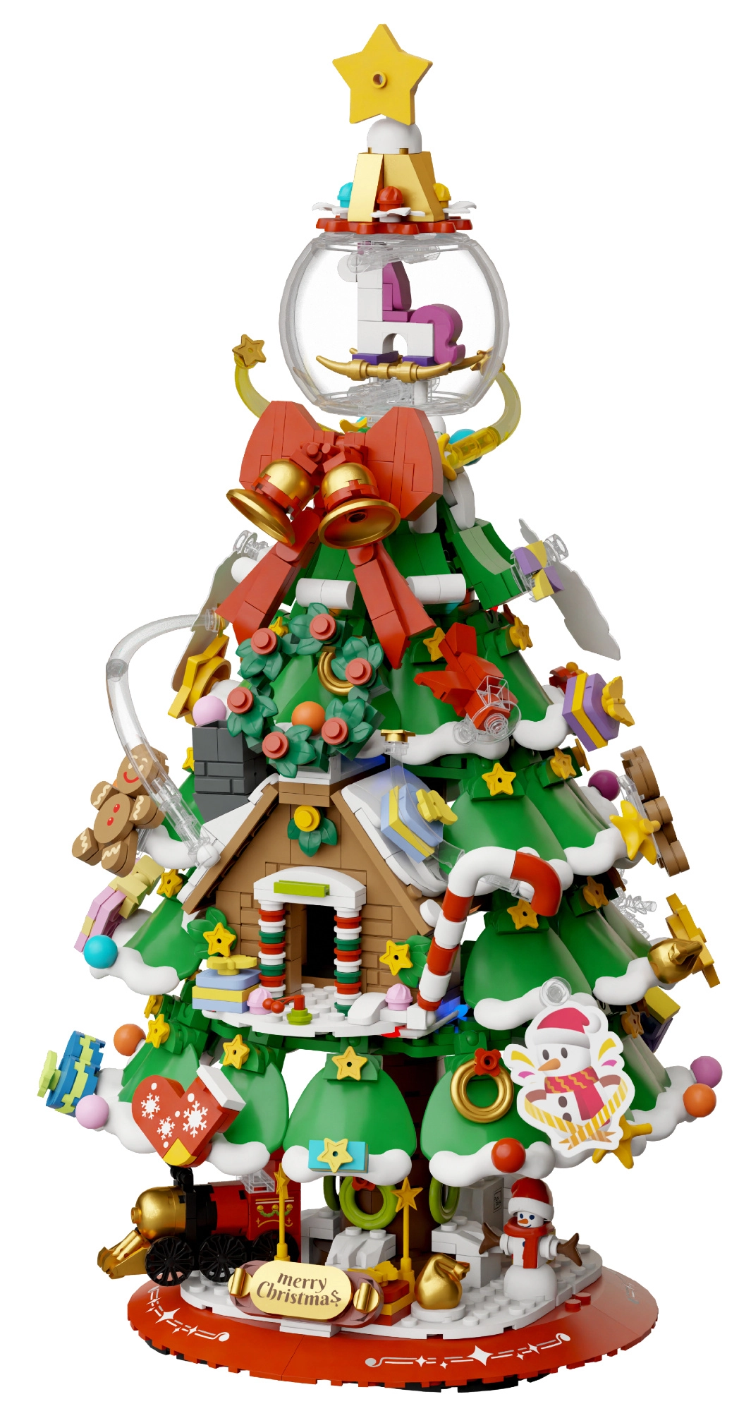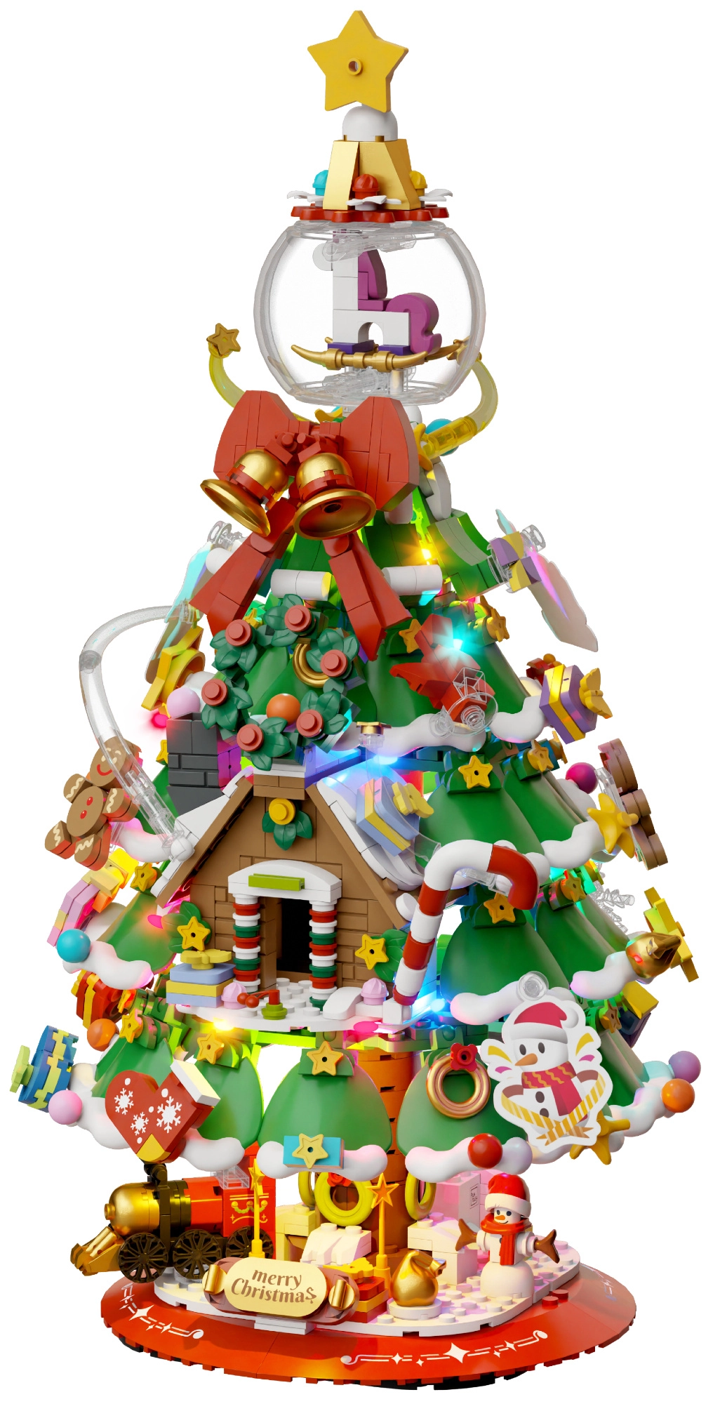 Tento elegantný vianočný stromček z kociek sa stane stredom pozornosti na sviatočnom stole aj v obývačke. Nechýbajú mu očarujúce detaily ako mini vláčik, snehuliak, perníková chalúpka, zvončeky a perníkový panáčik. Na vrchole žiari krištáľová guľa s hojdacím koníkom vrátane priehľadného krytu pre ochranu a efektný vzhľad.
