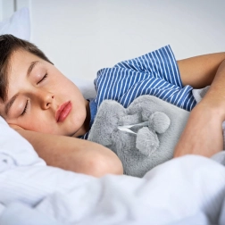 Plyšový povrch je jemný k pokožke, zvyšuje izoláciu a spríjemňuje kontakt s teplom pri relaxe doma v posteli alebo na gauči.