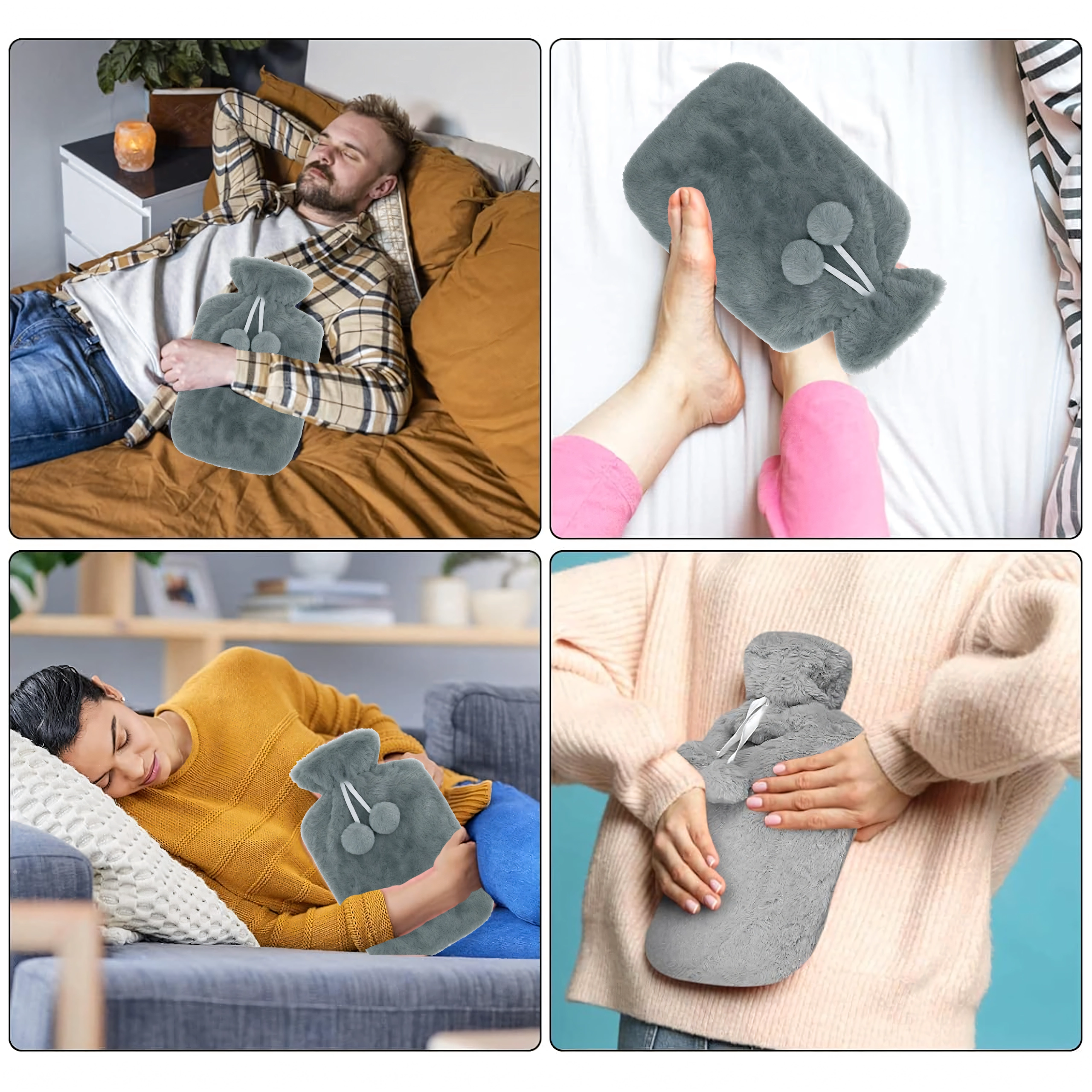 Praktický poťah s ozdobnými bambuľkami zabezpečuje lepšiu izoláciu, čistotu a komfort pri kontakte s telom. Textúrovaná gumová fľaša vo vnútri rovnomerne rozvádza teplo a znižuje riziko prehriatia miest. Termofor je skvelý na domáci relax, pri menštruačných bolestiach, svalových napätiach aj na zahriatie v chladnom počasí.