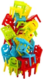 - Varianta 1: Hráči postupne skladajú stoličky do veže. Kto zhodí vežu, prehráva.