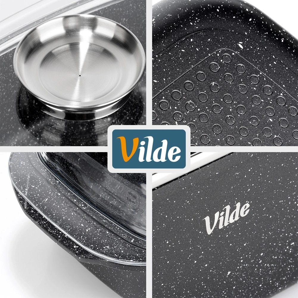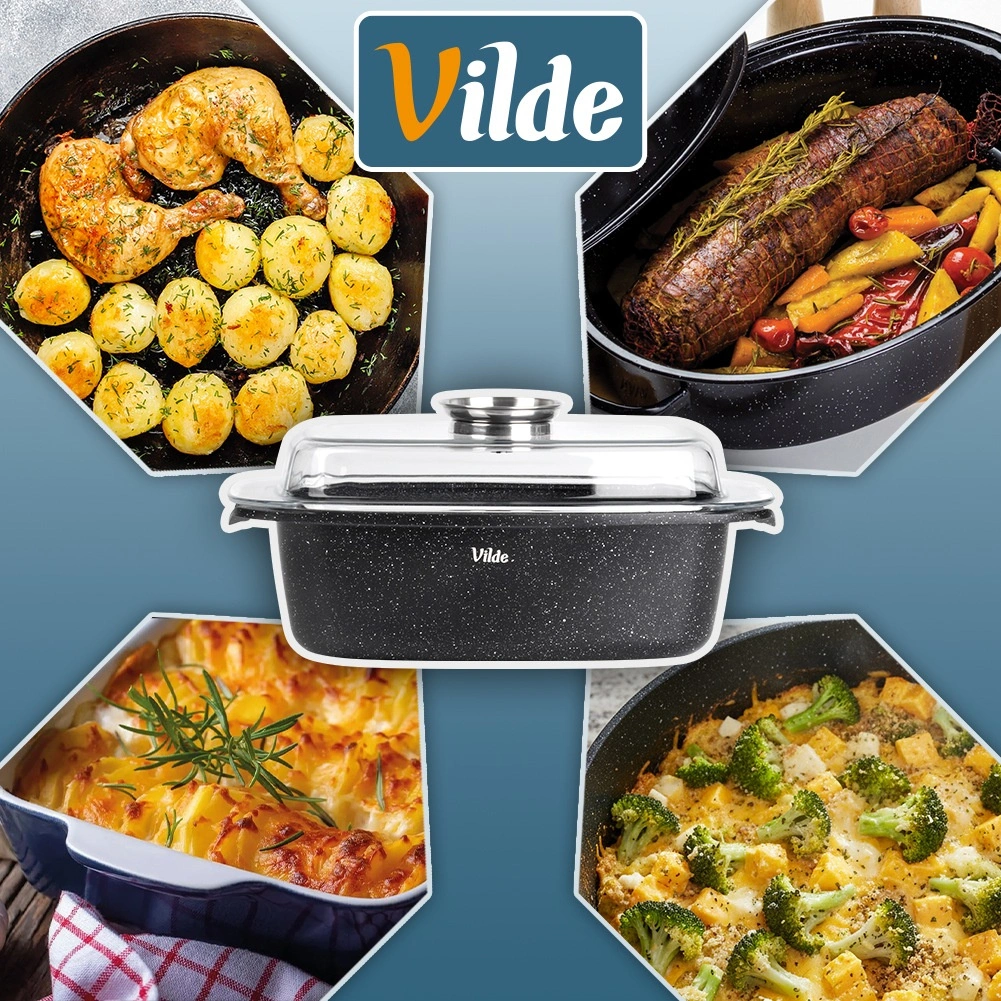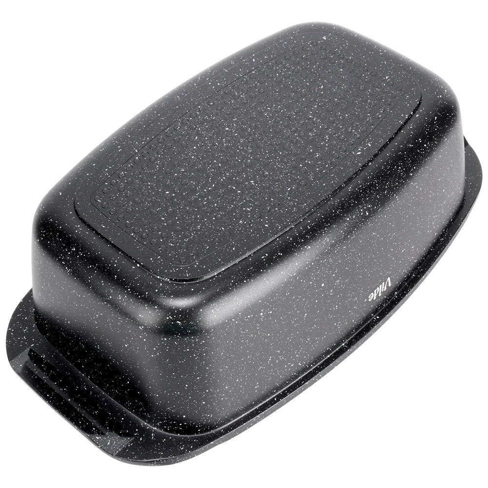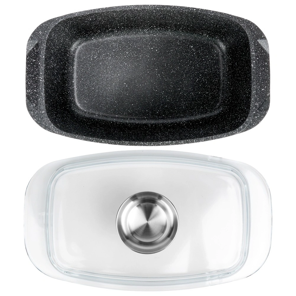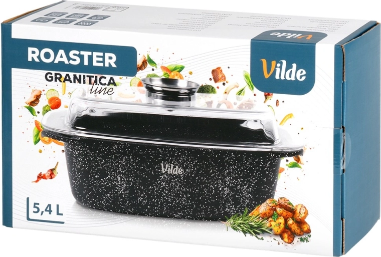 Obdĺžnikový pekáč z odliatku hliníka s odolnou granitovou nepriľnavou vrstvou je všestranným pomocníkom na každodenné varenie. Sklenené veko s centrálnym dávkovačom tekutých prísad umožní dopĺňať vodu, víno či marinádu bez zdvíhania veka – pre šťavnaté a aromatické výsledky.