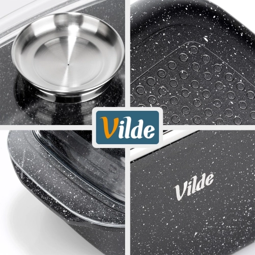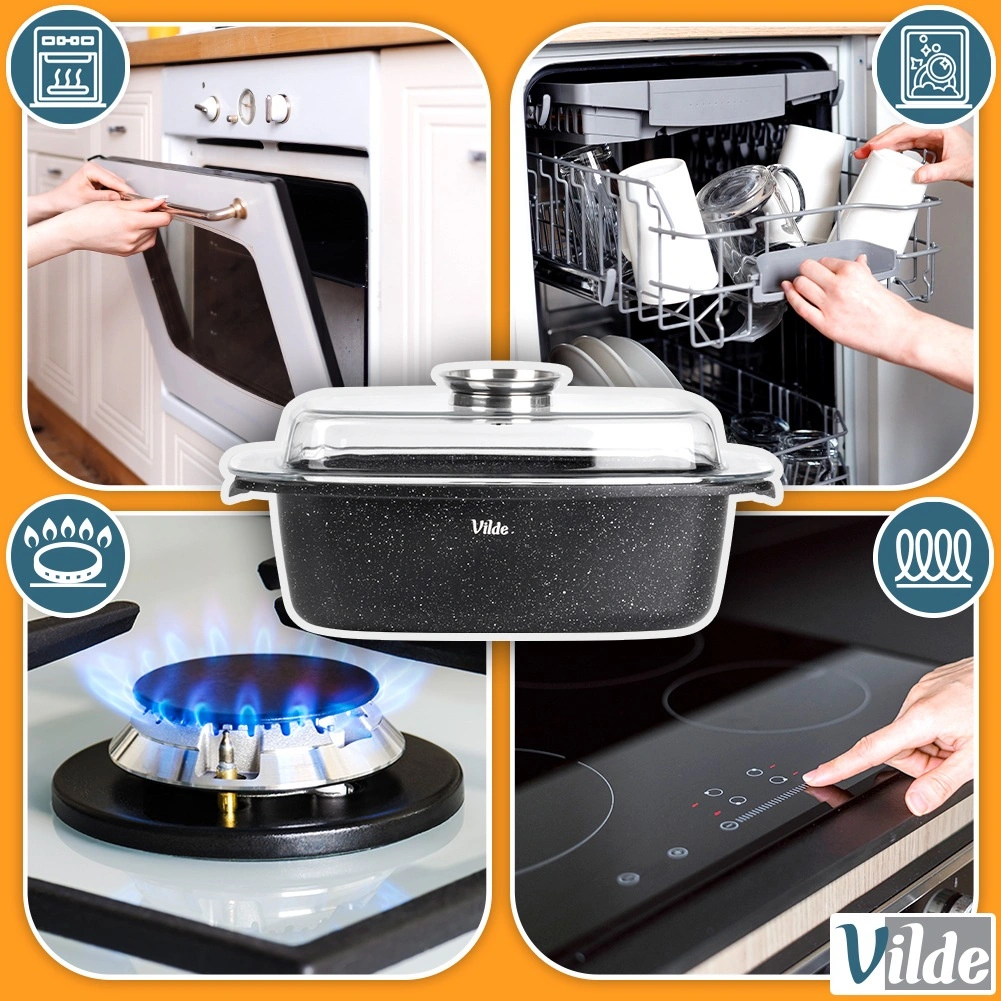 Kompatibilný s plynom, elektrinou, sklokeramikou aj indukciou. Odolnosť do 250 °C (s vekom do 220 °C) rozširuje možnosti varenia.