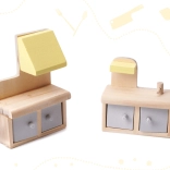 Malá drevená kuchynka s realistickými detailmi je ideálnym miestom pre prípravu imaginárnych jedál a zábavu vašich detí.