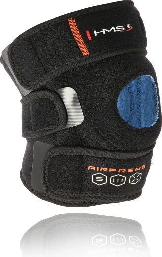 Univerzálna bandáž na koleno HMS KO1765 sa postará o spoľahlivú stabilizáciu pri športe aj rekonvalescencii. Vďaka bočným výstuhám účinne bráni laterálnemu a mediálnemu vybočeniu, zatiaľ čo nastaviteľné pásky na suchý zips umožnia presné dotiahnutie. Priedušný materiál s technológiou AIRPRENE a otvorená oblasť pately zabezpečujú komfort a odľahčenie kĺbu.