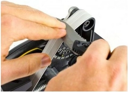 Robustná kovová konštrukcia, hladké vodiace kladky a uhlové vodiace pravítko zabezpečujú konzistentné výsledky a opakovateľnosť. Väčšia kontaktná plocha pásu pomáha vytvárať rovnomerné fazety a hladký výbrus, a to ako pri kuchynských, tak pri outdoorových a pracovných nožoch.