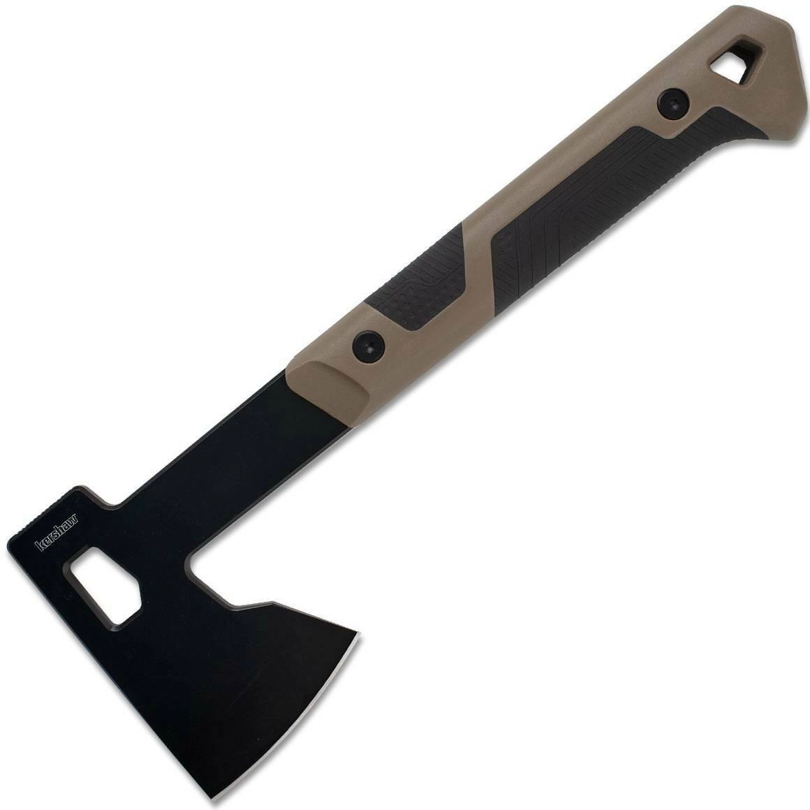 Táborová sekera Kershaw Deschutes kombinuje moderný dizajn s funkčnosťou do prírody. Čepeľ z nehrdzavejúcej ocele 3Cr13 s povrchovou úpravou čiernym oxidom je odolná proti korózii a ľahko sa udržiava. Full‑tang konštrukcia dodáva istotu pri práci a lepší prenos sily pri štiepaní či tvarovaní dreva.