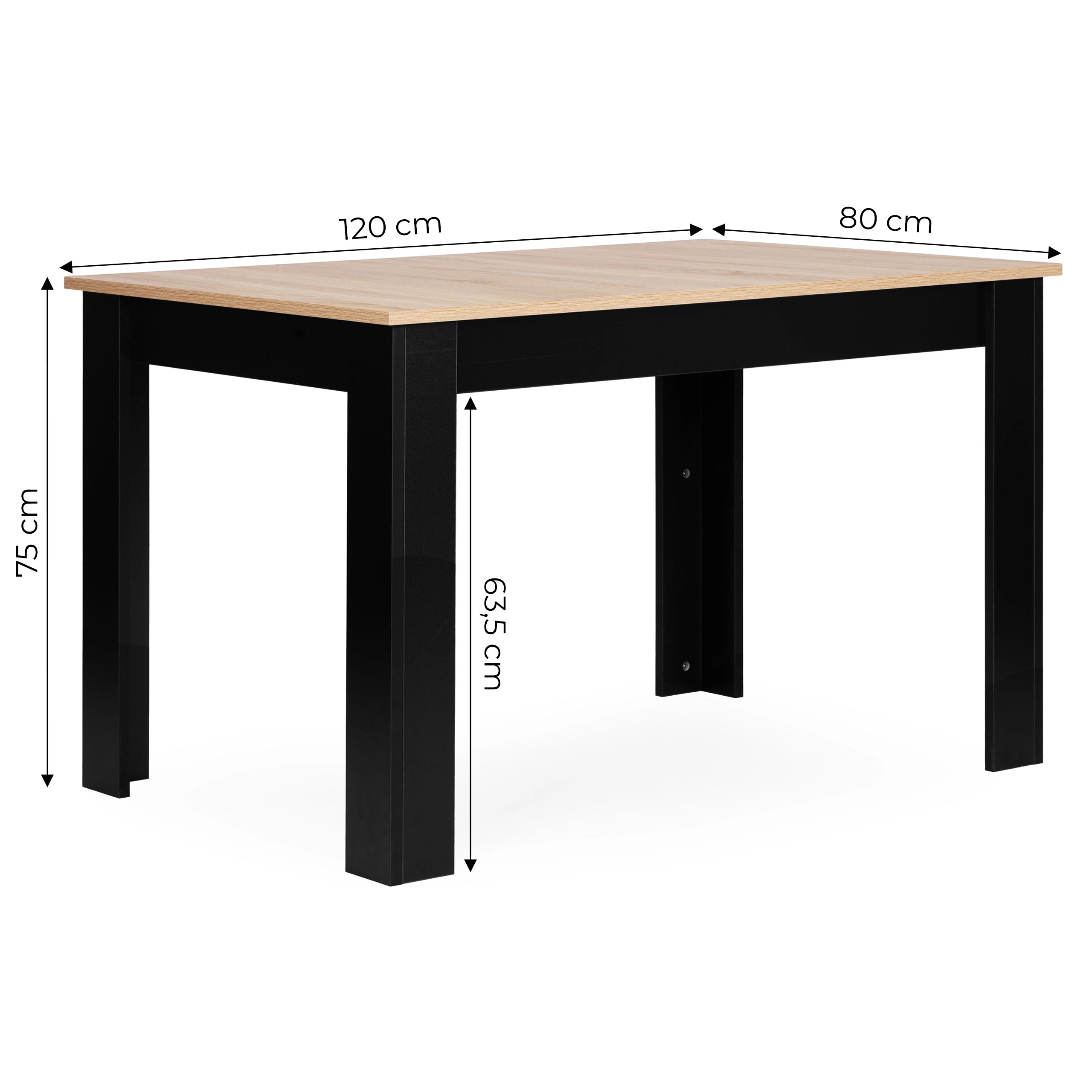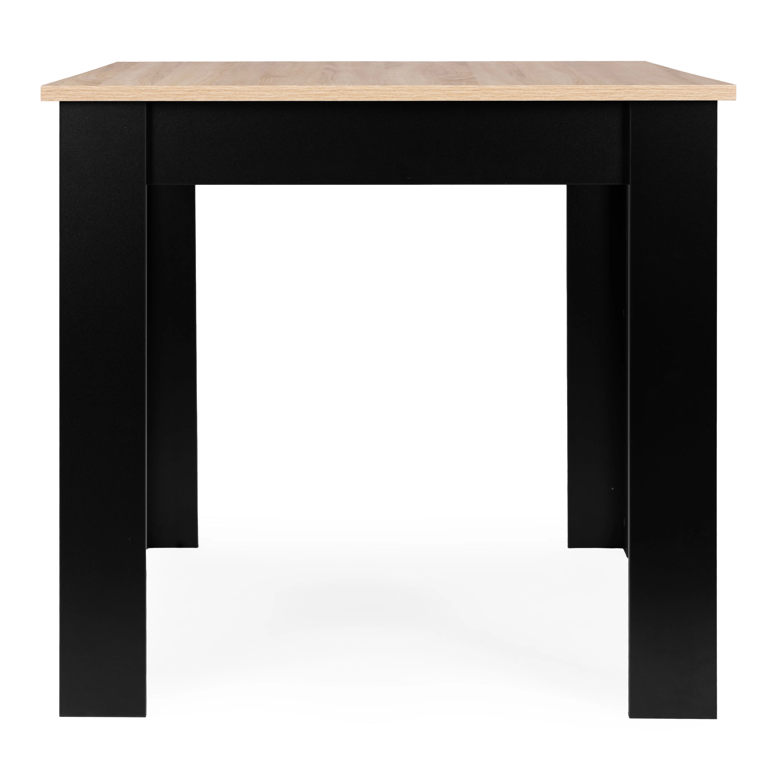 Elegantný a funkčný stôl do kuchyne aj jedálne v modernom dvojfarebnom prevedení kombinuje prírodný vzhľad dosky v dekore sonoma s kontrastnými čiernymi nohami. Univerzálny dizajn sa hodí do moderných aj škandinávskych interiérov a vytvorí príjemné miesto pre spoločné chvíle pri raňajkách, káve aj rodinných večeriach.