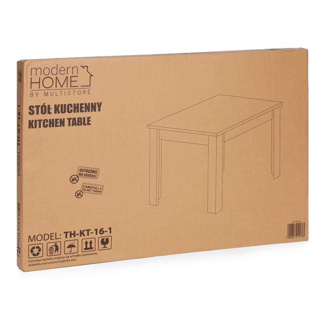 Praktický jedálenský stôl ModernHome pre 4 osoby ponúka robustnú konštrukciu z MDF s povrchom z melamínu v dekore dub sonoma. Vďaka rozmerom 120 × 80 cm poskytuje dostatok miesta na každodenné stolovanie, je odolný proti poškriabaniu, ľahko sa čistí a je stabilný vďaka masívnym nohám a protišmykovým podložkám.
