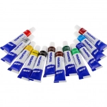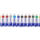 Sada obsahuje výber 12 obľúbených odtieňov v 12 ml tubách: svetlomodrá a tmavomodrá, svetlozelená a tmavozelená, svetložltá a tmavožltá, svetločervená a tmavočervená, svetlohnedá a tmavohnedá, biela a čierna. Hliníkové tuby so skrutkovacím uzáverom umožňujú presné dávkovanie a chránia farbu pred vysychaním.