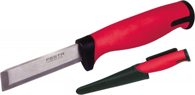 Univerzálne stolárske dláto FESTA na presnú prácu v dielni aj v teréne. Ponúka obojstranné ostrie, nerezovú zosilnenú čepeľ 3 mm odolnú voči úderom kladiva a ergonomickú dvojzložkovú rukoväť pre bezpečné a pohodlné ovládanie. Súčasťou je ochranné puzdro s klipom pre jednoduché nosenie.