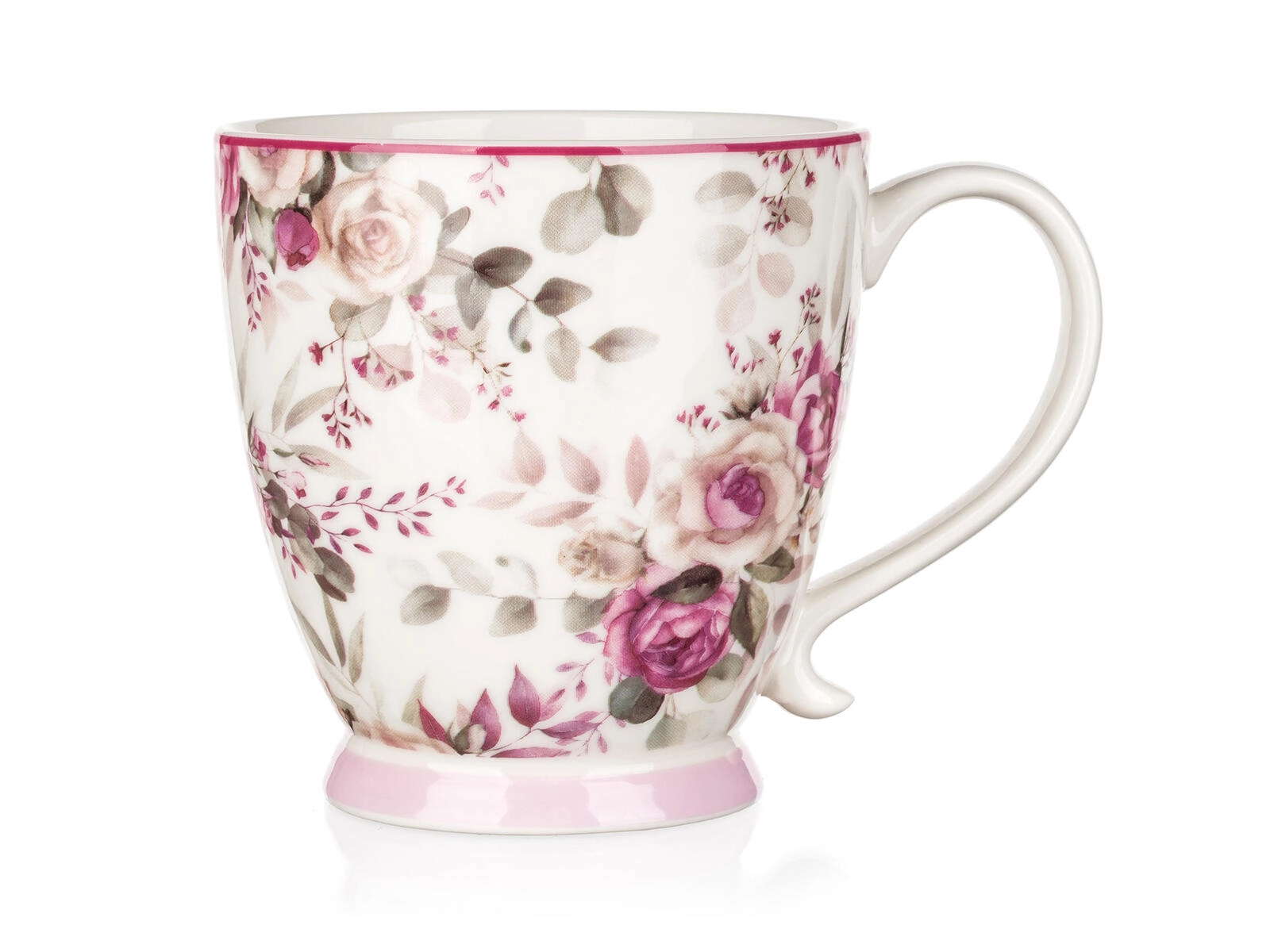 Objavte čaro servírovania s hrnčekom ROSE, ktorý zaujme nadčasovým kvetinovým motívom v ružových a zelených tónoch. Priestranný objem 460 ml ponúka komfortný pôžitok z obľúbených teplých aj studených nápojov, zatiaľ čo príjemne tvarované uško zabezpečuje pohodlné držanie.