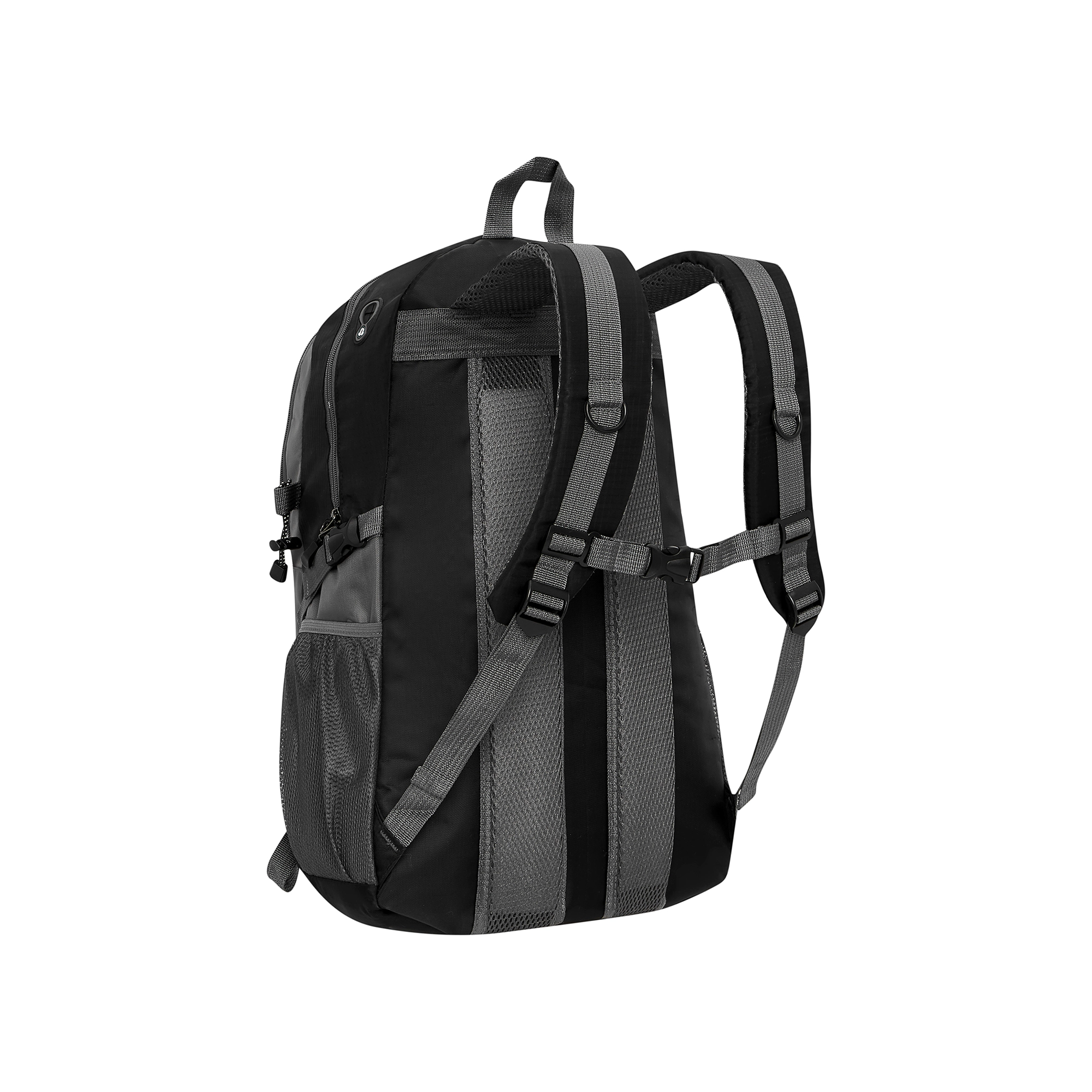 Nastaviteľný hrudný pás, polstrované popruhy a kompresné popruhy rovnomerne rozkladajú záťaž a držia batoh pevne pri tele.