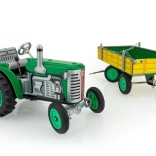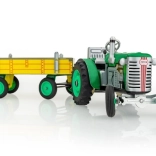 Tento jedinečný model traktora je poháňaný pružinovým strojčekom naťahovaným kľúčikom, čo dodáva hre nádych autenticity. Funkčná prevodovka s tromi rýchlosťami vpred a jednou vzad umožňuje deťom realisticky manipulovať s modelom. Majú možnosť riadiť pomocou volantu a využiť ručnú brzdu pre zastavenie. Vďaka mierke 1:25 tento model presne zobrazuje detaily skutočného traktora, čo z neho robí nielen skvelú hračku, ale aj zberateľský kúsok.