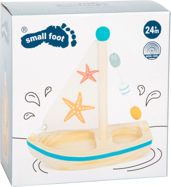 Táto kvalitná vodná hračka Small Foot prináša deťom radosť z voľnej hry vo vode aj mimo nej. Drevený trup s hladkým povrchom a látková plachta s motívom hviezdic zabezpečujú bezpečnú manipuláciu aj atraktívny vzhľad. Plávajúca konštrukcia je ideálna do vane, k bazénu či na letné vodné hry v prírode.
