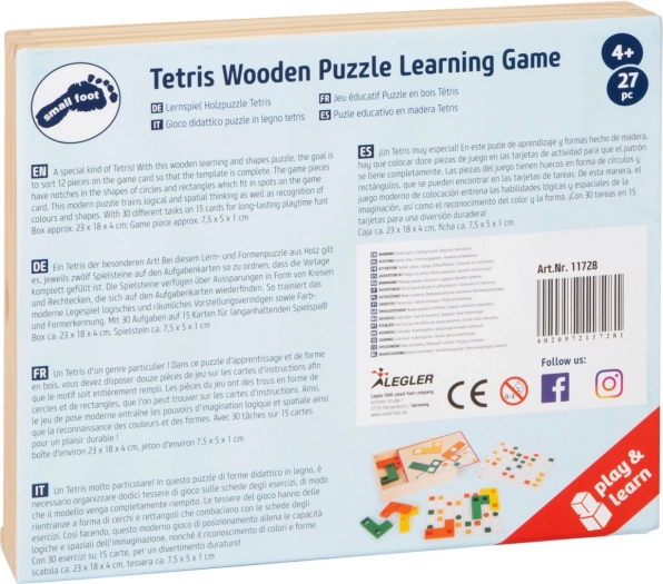 27 dielikov, 15 kartičiek s 30 predlohami, drevená krabička s posuvným vekom