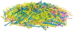 Obsahuje až 1000 rôznofarebných prvkov a spojok rôznych tvarov, vďaka ktorým môžu deti vytvárať atraktívne priestorové konštrukcie bez rizika lámania alebo poškodenia.