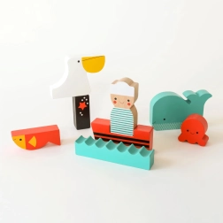 Drevená skladačka Na mori PETIT COLLAGE prináša deťom radosť z objavovania. Z jednotlivých dielikov zostavia obrázok s námorníkom, veľrybou či chobotnicou, alebo ich využijú ako samostatné figúrky na otvorenú hru. Dieliky sú príjemne zaoblené, pevné a farebne výrazné, takže lákajú k opakovanému skladaniu.