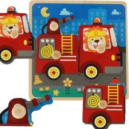 Drevené puzzle s motívom hasičského auta je ideálne pre malé deti, ktoré sa chcú naučiť koordinácii a logickému mysleniu. Tento farebný a zábavný produkt podporuje rozvoj jemnej motoriky.