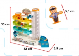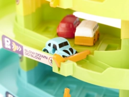 Veľká detská parkovacia garáž so 4 poschodiami, elektrickým aj manuálnym výťahom, svetelnými a zvukovými efektmi a 6 farebnými autíčkami. Skvelá hračka na rozvoj motoriky, logického myslenia a fantázie – ideálny darček pre malých milovníkov áut.