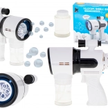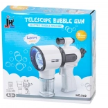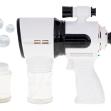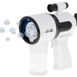 Táto biela pištoľ na bubliny je ideálna pre deti od 3 rokov aj rodinné vonkajšie akcie. Integrovaný ventilátor a systém s 5 krúžkami zabezpečujú plynulé fúkanie a prúd desiatok až stoviek bubliniek na jedno stlačenie spúšte. Pre väčšiu zábavu nechýba LED podsvietenie a zvuky, ktoré možno jedným tlačidlom zapnúť alebo vypnúť.