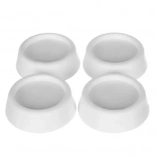 Premyslený tvar s prehĺbeninou pre nožičku a zvýšeným okrajom drží nohu spotrebiča isto na mieste, zatiaľ čo rýhované dno zabezpečuje priľnavosť k podlahe. Podlahy zostávajú bez škrabancov a spotrebiče majú dlhšiu životnosť vďaka nižším vibráciám.