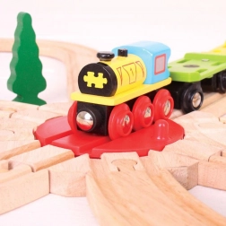 Točňa Bigjigs Rail je vyrobená z zodpovedne získaných prírodných materiálov a je plne kompatibilná s väčšinou bežne dostupných drevených vláčikodráh. Presné spracovanie zaisťuje hladký chod a jednoduché napojenie koľají.