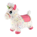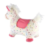 Roztomilé plyšové hopsadlo v tvare jednorožca poteší najmenšie deti od 12 mesiacov. Vďaka ergonomickému tvaru, výške sedla 23 cm a mäkkému odnímateľnému poťahu je skákanie bezpečné a pohodlné. Jednorožec po stlačení tlačidla vydáva zábavné zvuky, súčasťou je aj pumpička a batérie pre okamžitú zábavu.