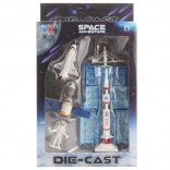 Set obsahuje raketu, družicu, figúrku kozmonauta, riadiacu stanicu a ďalšie tematické prvky, ktoré spoločne vytvárajú realistické prostredie. Praktické rozmery uľahčujú manipuláciu aj skladovanie.