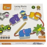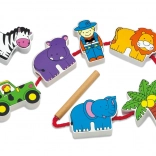 Sada obsahuje drevené kocky, ktoré zobrazujú obyvateľov safari vrátane leoparda, palmy, opice, hrocha, zebry, džípu, žirafy, medveďa, leva, slona a sprievodcu. Kocky sú precízne maľované z oboch strán netoxickými farbami a prinášajú deťom veľa radosti pri hraní. Všetky prvky sú navrhnuté tak, aby podporovali rozvoj jemnej motoriky a znalosti zvieracieho sveta.