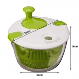 Praktična centrifuga za solato s prostornino 5 l vam pomaga hitro odstraniti vodo z oprane solate, zelišč ali zelenjave. Preprost ročni rotacijski mehanizem, prozorna skleda in varnostni pokrov z zapirali zagotavljajo udobno in učinkovito sušenje brez nepotrebne nereda.