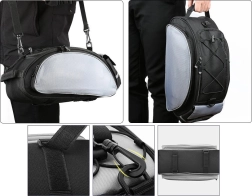 Uživajte v kolesarskih izletih s to praktično kolesarsko torbo, ki se enostavno pritrdi na nosilec. Ponuja glavni predal z notranjim žepom in dva stranska žepa z zadrgo za še več shranjevalne zmogljivosti.