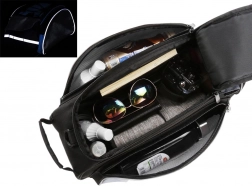 Odsevni trakovi za večjo varnost in dodaten trak za nošenje čez ramo.