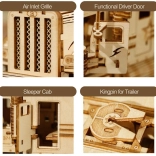 Model ponuja realistične detajle, vključno z odpiranjem vrat kabine, kar ga naredi dekorativno umetniško delo. Ta komplet ne potrebuje lepila, in ko je dokončan, postane ta nepremični model impresivna dekoracija vašega doma.