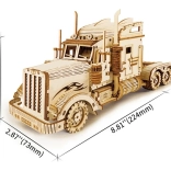 Ta detajliran in dodelan model tovornjaka je odličen primer natančne obrtne izdelave. Izdelan iz laserjem izrezanih delov iz 2 mm lipove vezane plošče, ki se enostavno iztiskajo iz podlage. Namenjen je razvijanju vašega tehničnega mišljenja, domišljije in fine motorike.