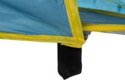 - SPECIFIKACIJA - barva: modro-rumena; material: 190T poliester; dimenzije zloženega šotora: 56 x 56 x 3 cm; dimenzije (dolžina/širina/višina): 65 x 115 x 80 cm; teža: 0,7 kg; teža v pakiranju: 0,75 kg.