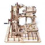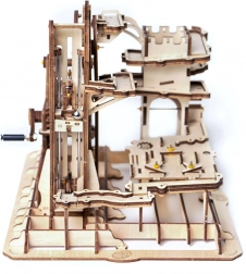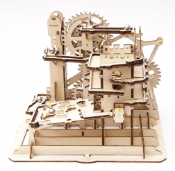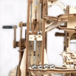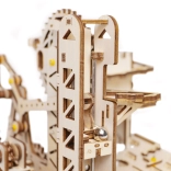 Model vsebuje stolpni razdelilnik, spiralne klance, žerjavno in kolesno dvigalo, kratki tobogan in pametno nameščena stikala, ki spreminjajo pot kroglic. Stopnja zahtevnosti je ocenjena s 4/5; sestavljanje traja približno 6–7 ur. Po končanem delu preprosto zavrtite ročico in se prepustite dinamičnemu prikazu, ki nazorno predstavlja principe STEM.