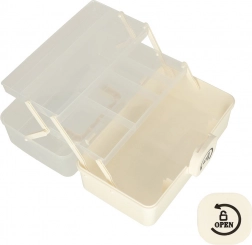 Varnostno zaklepanje zagotavlja zaščito pred otroki in varuje zdravila pred prahom in vlago. Ta posoda je idealna ne samo za zdravila, ampak tudi za šivalne pripomočke in druge malenkosti.