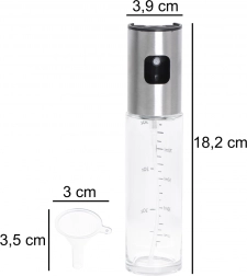 Ta razpršilna steklenica je idealen pomočnik pri pripravi hrane. Popolnoma primerna za doziranje olj, kisa, sojine omake ali drugih tekočih začimb. Enostavno in natančno doziranje zagotavlja mehanski razpršilec, ki ustvarja fin meglico, kar zagotavlja enakomerno prekrivanje.